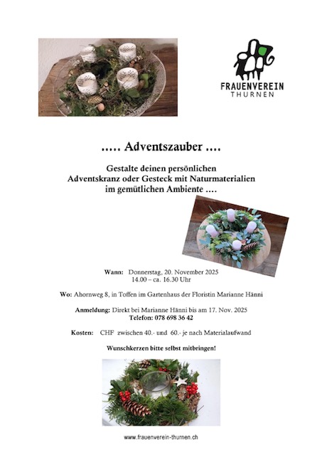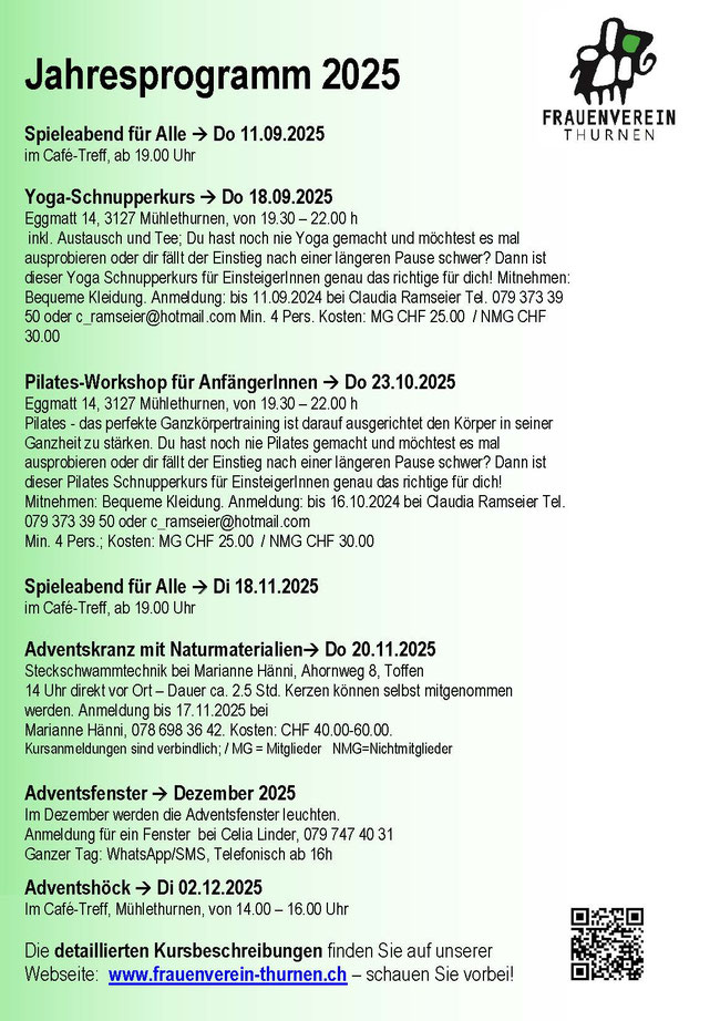 "Nume zäme geits"…ist unser Motto. Die Frauen von Thurnen, sowie alle Interessierten besuchen die Kurse und Veranstaltungen des Frauenvereins oder treffen sich im